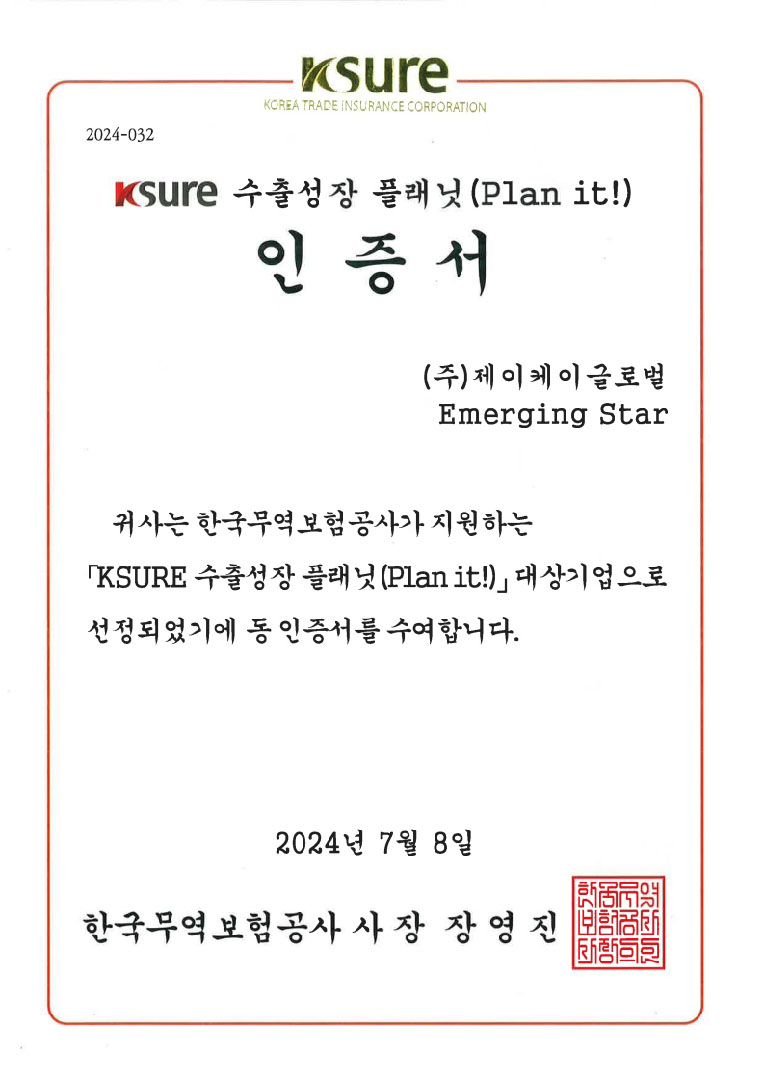 | 2023 | – Designated as a “Global Small but Strong Company 1000+” – Selected as a Promising SME by Gyeonggi Province |