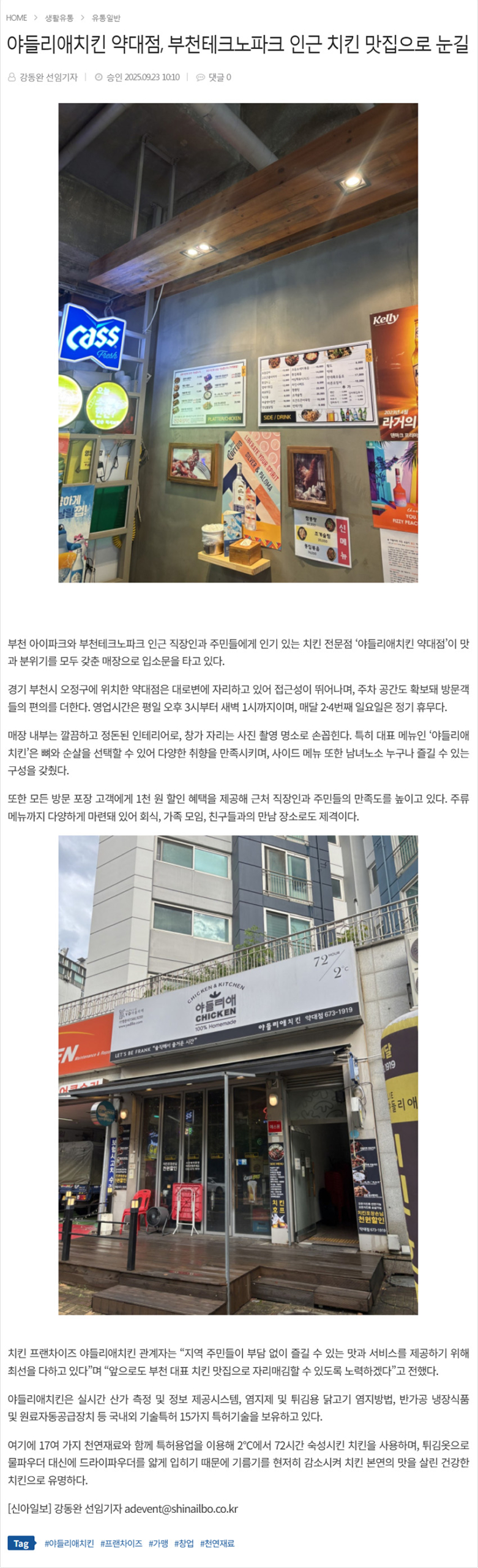 야들리애치킨 약대점, 부천테크노파크 인근 치킨 맛집으로 눈길 Yadllie News 야들리애치킨 약대점, 부천테크노파크 인근 치킨 맛집으로 눈길 신아일보 – 2025-09-23 *기사출처: https://www.shinailbo.co.kr/news/articleView.html?idxno=2119775 목록보기 yadllie122025-09-29T14:57:59+09:00