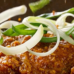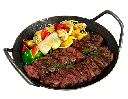 丰富的烤牛排、口感鲜活的洋葱、红辣椒、双孢菇的梦幻组合。