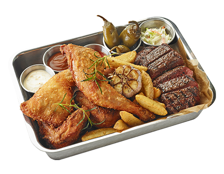 嫩嫩的炸鸡和国产牛上要牛排的相遇! 各种酱料再加上炸薯条!